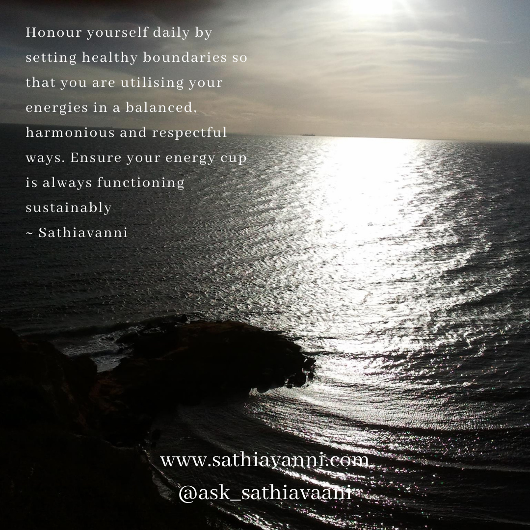 Honour yourself daily by setting healthy boundaries so that you are utilising your energies in a balanced harmonious and respectful way. Ensure your energy cup is always functioning sustainably.