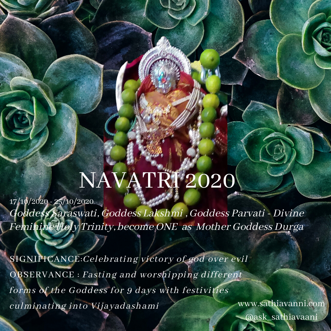 OBSERVANCE: Fasting and worshipping different forms of the Goddess for 9 days with festivities culminating into Vijayadashami. On the 9th day where Mother Goddess Durga rises from 9 days of meditation to vanquish all forms of evil and illnesses within humanity. It is a time to allow oneself to truly be freed from everything that no longer serves you and awaken the divine feminine power that is within every human being. The feminine power that has the innate ability to nurture, love and protect.